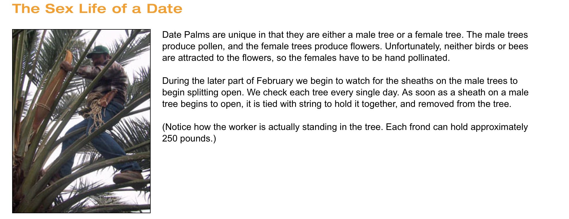 You can learn all about their date trees on their website, dateland.com. The town is not shy about what they do.