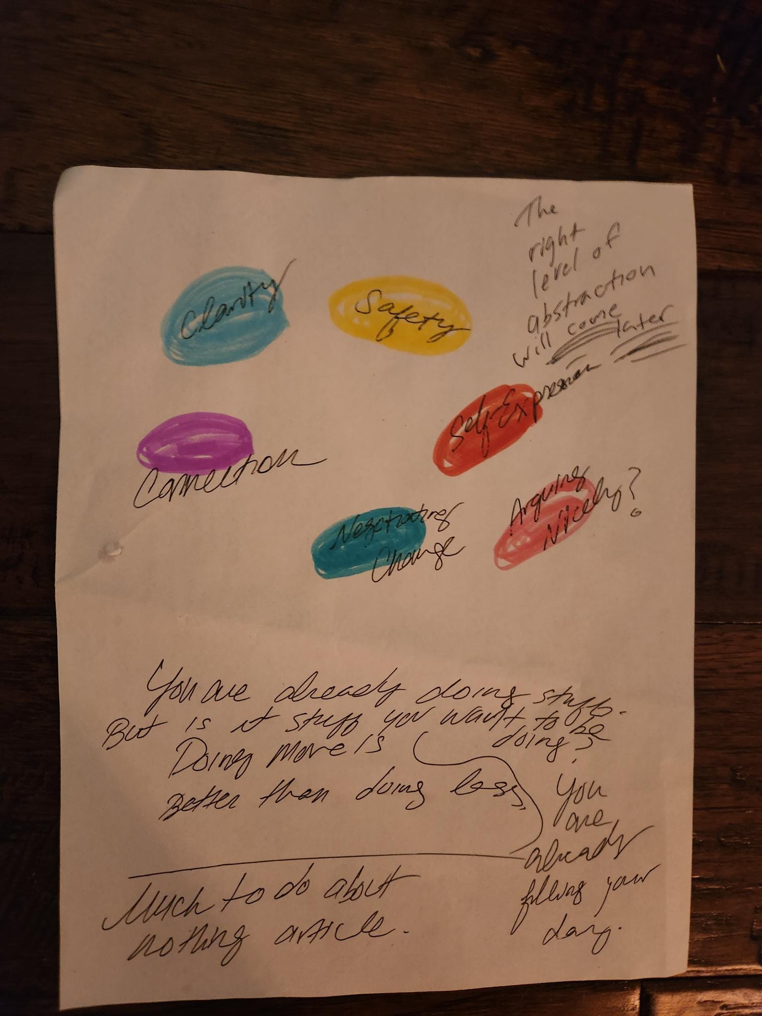 I made this drawing, with the reminder that the “right level of abstraction will come later.”