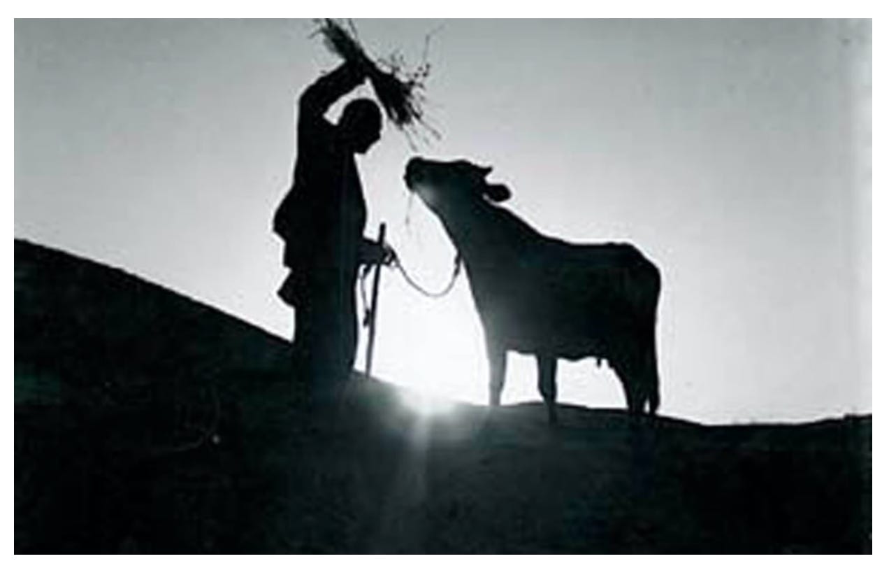 The film does not require subtitles. It’s visual. It’s simple. The story is set in a remote Iranian village, where owning a cow for subsistence is a sign of prosperity. The barren landscape (true of a large part of Iran) reminds you of Grigory Kozintsev’s film landscapes as in “Korol Lir” (the Russian King Lear) where the landscape becomes a character of the story.