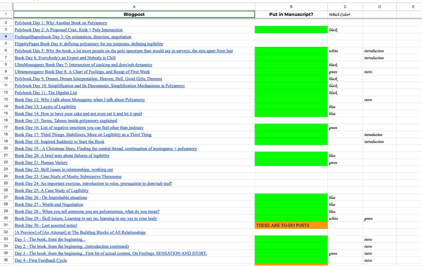 After I get it all into the one document, it will feel a little bit scary. I will save it as its own copy as a saved state of just copying over the blogposts into their correct sections, start a new copy.