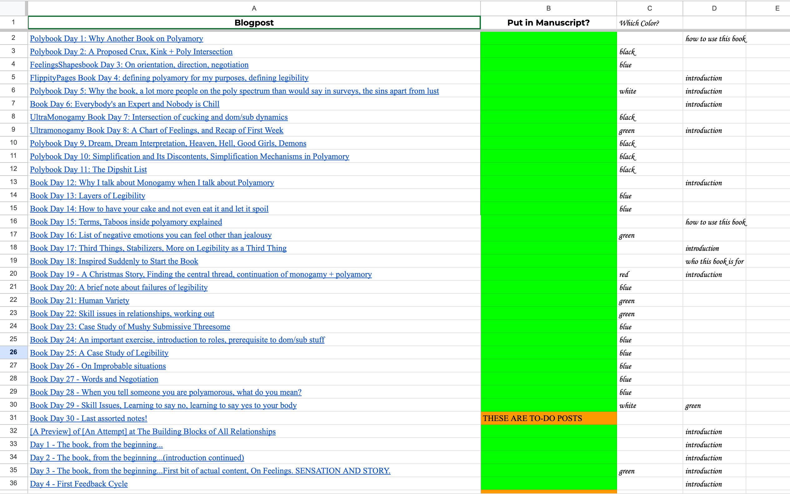 I put all the blogposts in the document! Hurray!
